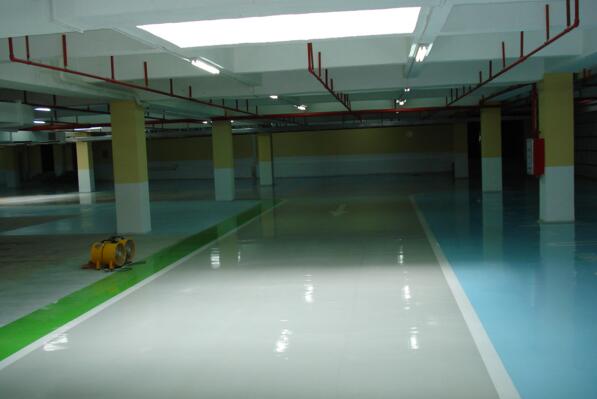 地下停車場(chǎng)環(huán)氧地坪是通過(guò)施工環(huán)氧樹(shù)脂地坪漆,達(dá)到防水、防潮、防塵的效果,并通過(guò)現(xiàn)代化調(diào)色技術(shù),使停車